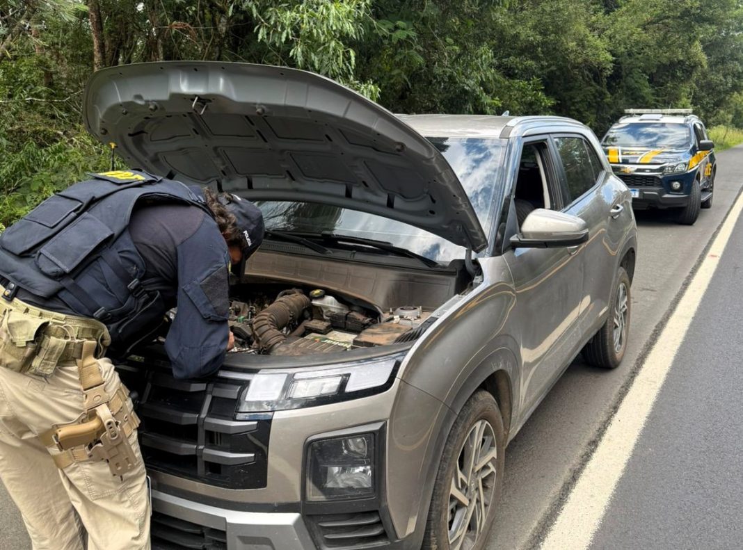 Durante a vistoria detalhada, os policiais perceberam que diversos sinais de identificação do carro, como as gravações nos vidros e a numeração do motor, haviam sido adulterados. Os agentes confirmaram que se tratava de um “clone” e que o veículo original possuía registro de roubo no Rio de Janeiro (RJ).