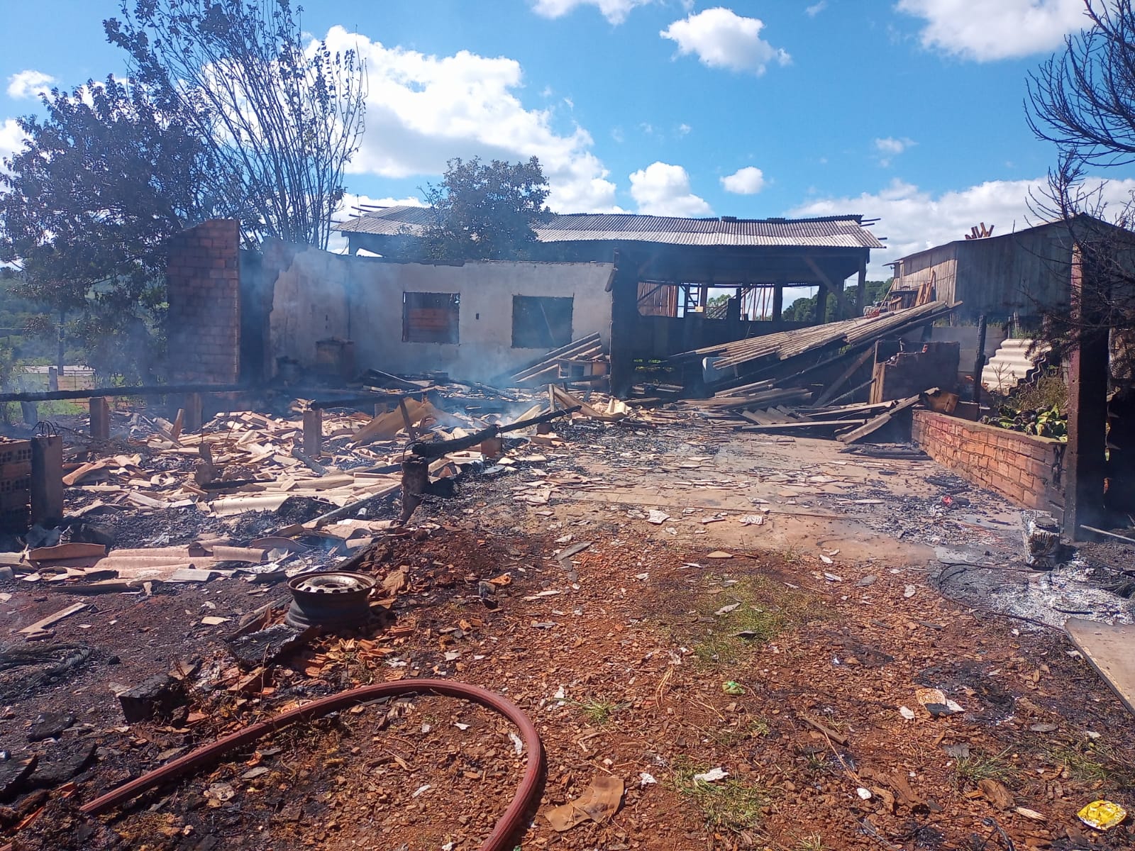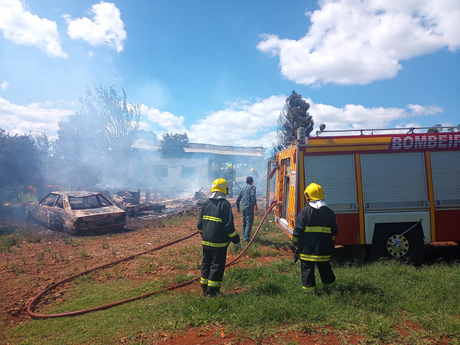 O responsável pela residência se apresentou e no seu depoimento informou que havia jogado diesel próximo à residência para tentar eliminar abelhas que estavam no local e após saiu de casa para ir ao mercado. Na residência moravam três pessoas e ninguém estava no local na hora do ocorrido. Após o rescaldo foi realizado o isolamento da área do incêndio e deixado o local aos cuidados dos proprietários.