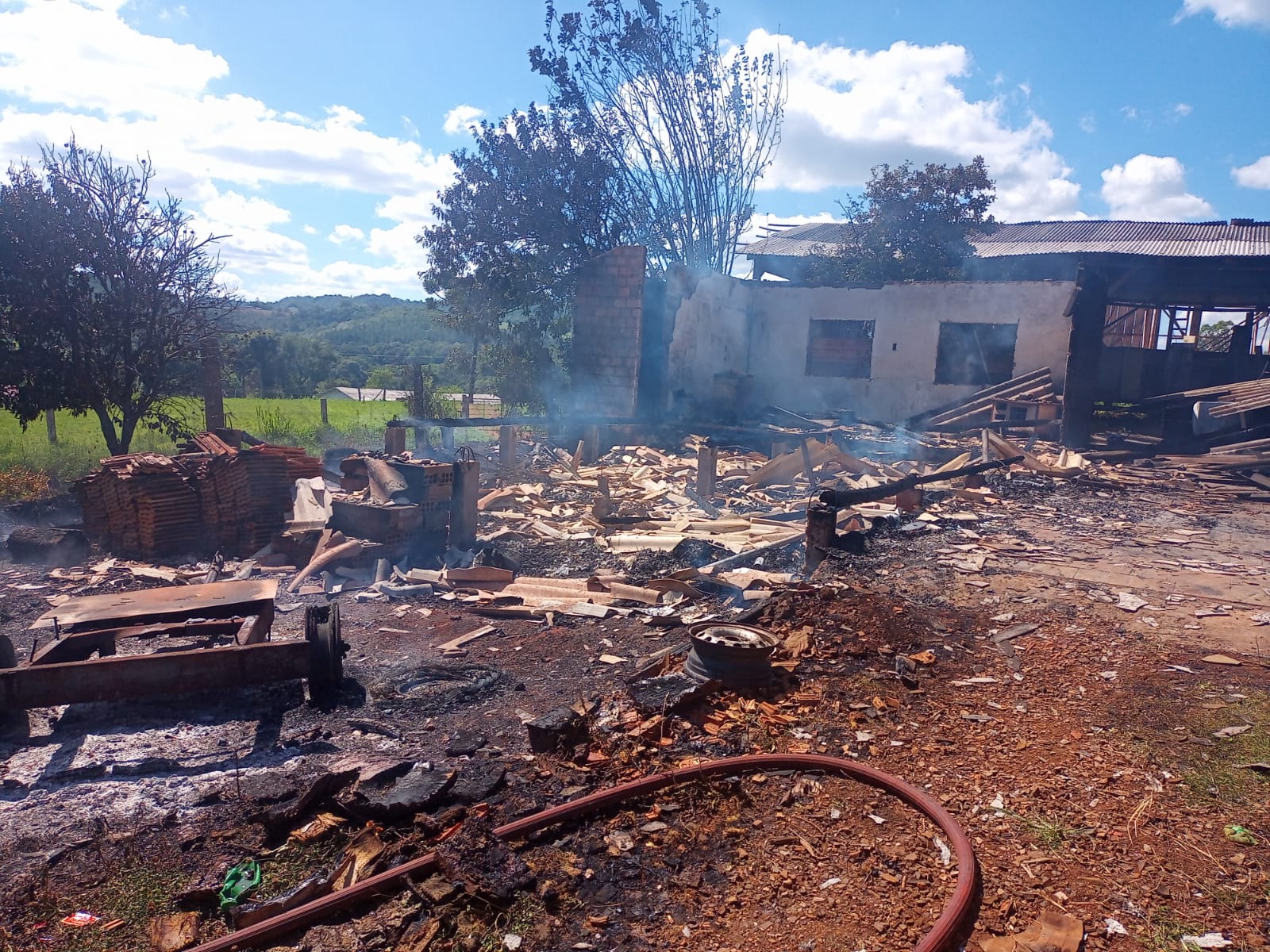 Campos Novos – Por volta das 14h desta sexta-feira (06) o Corpo de Bombeiros foi acionado para atender um incêndio em residência às margens da BR-282 em Campos Novos, sentido a Vargem. No local a guarnição verificou que a residência já havia sido consumida totalmente pelo fogo, então, efetuou o rescaldo e proteção do entorno da edificação.