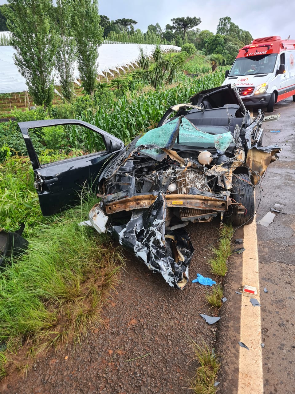 Casal milagrosamente sobrevive a acidente que destruiu automóvel, em Fraiburgo