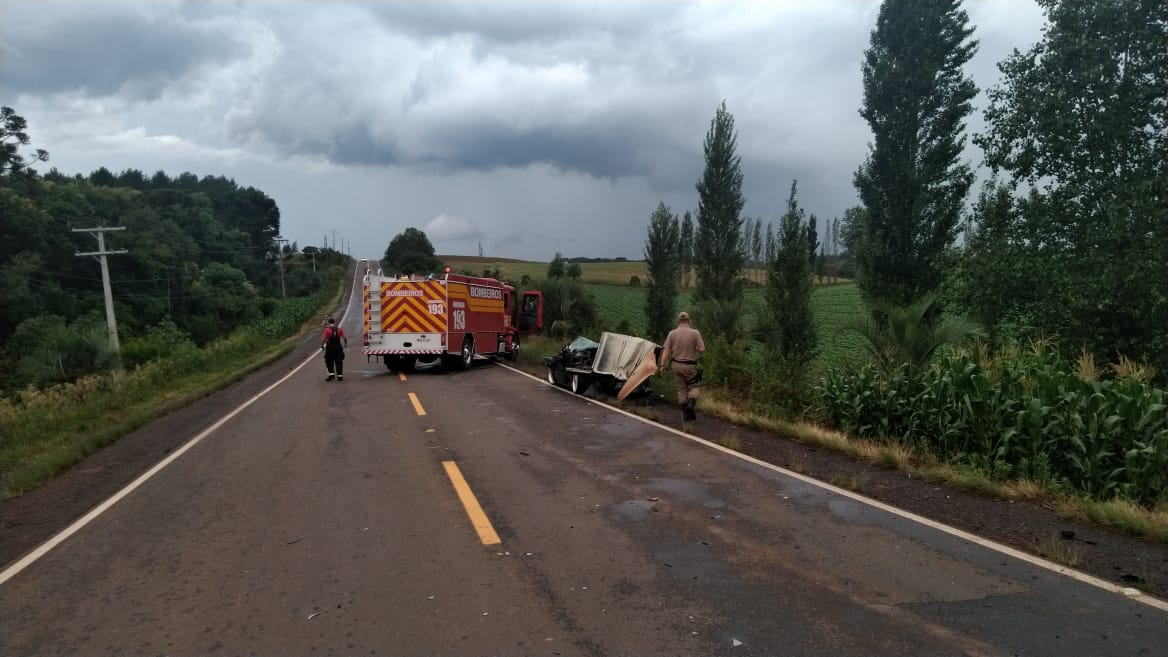Fraiburgo – Um grave acidente de trânsito foi registrado por volta das 15h30min deste sábado (19) na SC-355 em Fraiburgo. Colisão envolvendo automóvel e caminhão na saída para Lebon Régis. Corpo de Bombeiros foi acionado e constatou que o condutor do caminhão Mercedes-Benz, de 61 anos, nada sofreu e permaneceu no local. O condutor do VW/Gol encontrava-se dentro do veículo, apresentando traumatismo crânio encefálico grave e diversos ferimentos. Foi retirado e encaminhado ao hospital pelo SAMU. A segunda vítima, uma jovem de 20 anos, encontrava-se dentro do veículo no banco do carona usando cinto de segurança. Apresentava escoriações no crânio e membro superior esquerdo. Relatou sentir dor no pescoço. Foi imobilizada e retirada do veículo, sendo posteriormente conduzido ao Hospital Fraiburgo pelos bombeiros. Por fim, o local e veículos foram deixados aos cuidados da Polícia Militar.