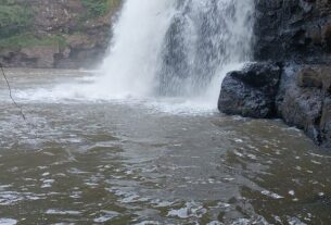 O Corpo de Bombeiros auxiliou nas buscas por uma mulher desaparecida, na tarde desta terça-feira (07), na cachoeira Salto Caveiras, na localidade de Santa Terezinha do Salto, interior de Lages, na Serra catarinense.