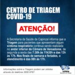 Capinzal – A Secretaria de Saúde de Capinzal informa que a triagem para pacientes que apresentam algum sintoma respiratório continua sendo realizada no andar inferior da Câmara de Vereadores de segunda a sexta-feira, das 7h30 às 11h30 e das 13h às 17h. Nos finais de semana e feriados o atendimento é das 8h às 17h.