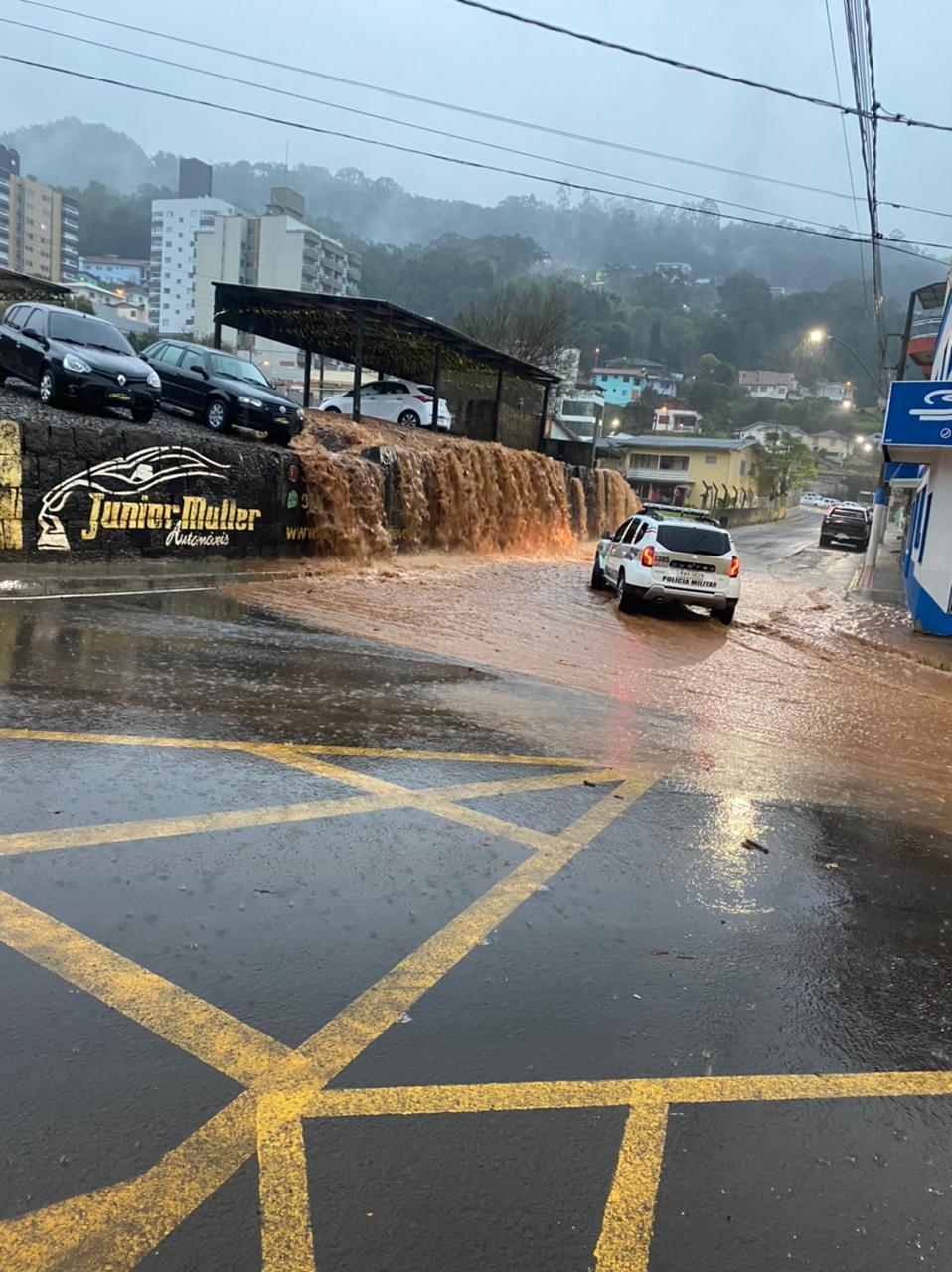 Chuva intensa provoca alagamento no centro de Capinzal; vídeo