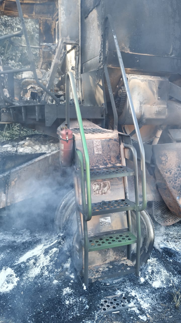 Capinzal – Uma colheitadeira avaliada em aproximadamente R$ 300 mil foi destruída por um possível incêndio criminoso, no interior de Capinzal. O fato ocorreu na comunidade de Fazenda das Palmeiras. Segundo o proprietário, Gustavo de Souza, a máquina foi utilizada para a colheita de aveia e depois disso ficou parada durante quatro dias, sendo que na quinta-feira (14) a máquina estava em perfeitas condições. Já no sábado (16) quando iriam retomar a colheita se depararam com o equipamento completamente queimado.