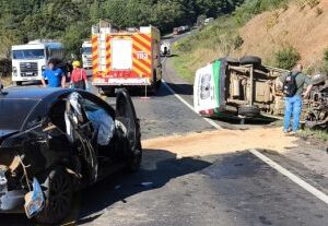 Durante o deslocamento até o local, a equipe de resgate encontrou um veículo que já se dirigia ao hospital, transportando duas vítimas. Uma mulher de 42 anos relatava dores pelo corpo, enquanto outra, de 55 anos, apresentava dores na cabeça, no braço e na perna.