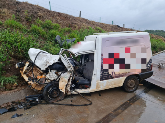 Conforme as autoridades, o acidente envolveu um Fiat/Fiorino, de São José do Cedro (SC) e uma carreta Volvo, placa Mercosul. Os bombeiros informaram que o condutor do Fiorino, de 57 anos, ficou gravemente ferido.