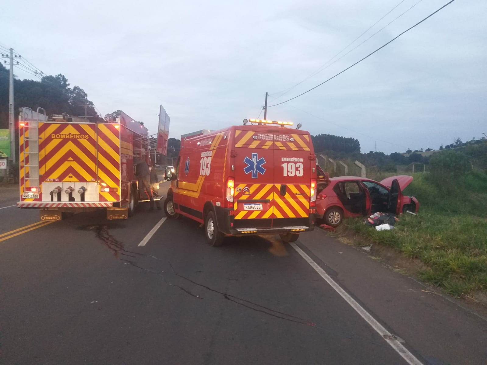 Após a retirada das ferragens e imobilização em maca rígida, a vítima foi conduzida ao Hospital Salvatoriano Divino Salvador em Videira. Foi realizado o isolamento da cena e orientação do fluxo de trânsito até a chegada da Polícia Militar de Pinheiro Preto e, posteriormente, a Polícia Militar Rodoviária.