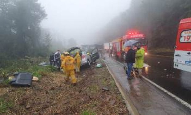 Uma pessoa sofreu ferimentos graves em um acidente na manhã desta quinta-feira, dia 25, na BR-282. A colisão foi entre um automóvel e um caminhão, segundo informou o Corpo de Bombeiros, em um trecho no município de Cordilheira Alta.