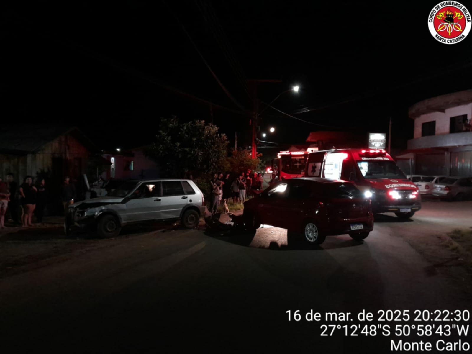 Monte Carlo – Por volta das 20h20 deste domingo (16) o Corpo de Bombeiros foi acionado para atender a um acidente de trânsito na rua Carlos de Oliveira Prater, bairro Santo Antônio, em Monte Carlo, no meio-oeste.