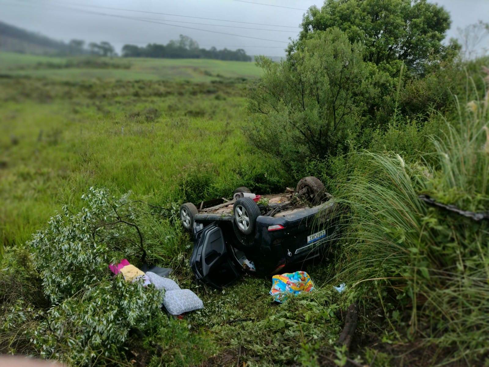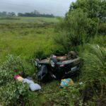 Curitibanos – Por volta das 8h10min deste domingo (14) o Corpo de Bombeiros foi acionado para atender um acidente de trânsito na BR-470, próximo ao Caraguatá em Curitibanos, no meio-oeste catarinense. Assim que chegaram ao local as guarnições constataram uma colisão lateral em que um Ford/Focus, em seguida, saiu da pista e caiu em um barranco, ficando capotado com as rodas para cima.