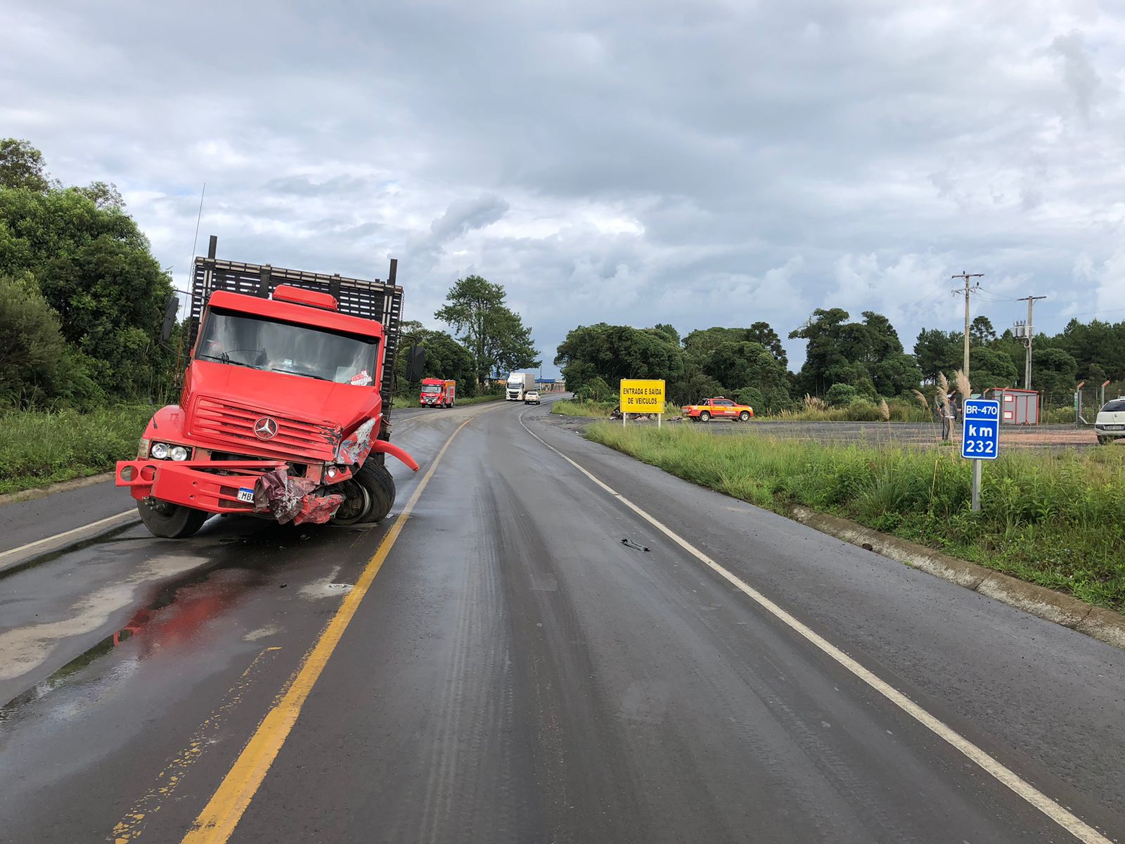 São Cristóvão do Sul – Um acidente envolvendo carro e caminhão deixou um morto na BR-470 em São Cristóvão do Sul, região serrana, na manhã desta terça-feira (07). Por volta das 7h30 o Corpo de Bombeiros foi acionado e se deslocou até próximo ao trevo com a BR-116. Colisão frontal envolveu caminhão Mercedes-Benz 1620 com placas Mercosul conduzido por um homem de 23 anos que nada sofreu e um automóvel GM/Agile com placas de Xanxerê-SC conduzido por um homem de 50 anos, que encontrava-se preso no interior do veículo acidentado, politraumatizado em óbito.