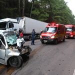 Colisão frontal entre carro e carreta mata jovem de 26 anos na BR-470