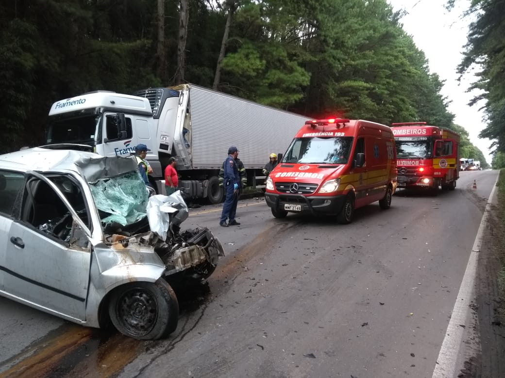 A vítima foi identificada como Aloerco dos Passos Antunes, de 26 anos, morador de Otacílio Costa. O motorista da carreta não ficou ferido. Corpo de Bombeiros esteve no local e fez a remoção do corpo do condutor do automóvel que ficou preso nas ferragens. O Instituto Geral de Perícias fez a remoção do corpo. A Polícia Rodoviária Federal fez os levantamentos. Durante o atendimento o trânsito ficou bloqueado nos dois sentidos, formando longas filas. (Com informações de Luis Fernando Palhano).