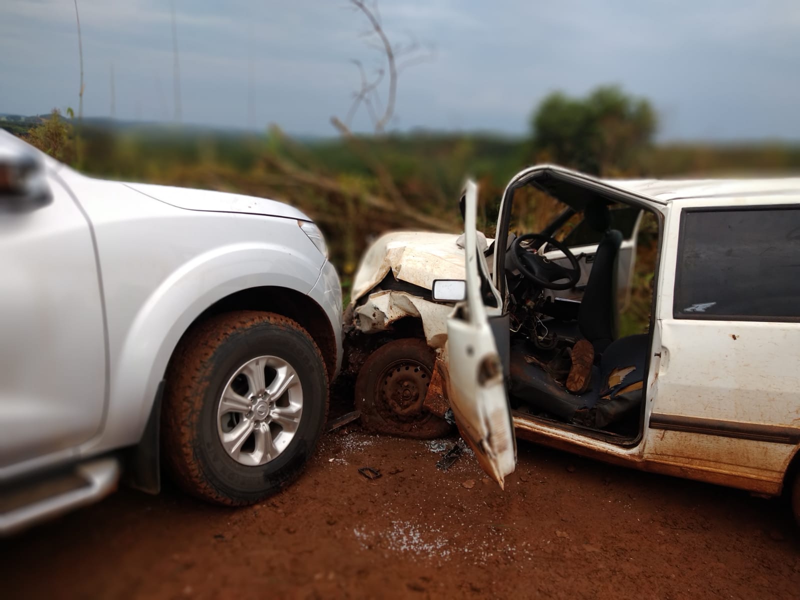 Colisão frontal envolve carro e caminhonete no interior de Brunópolis