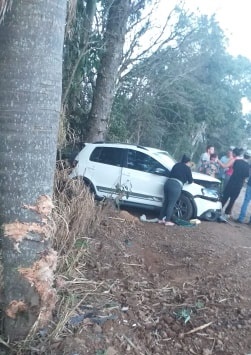 Testemunhas disseram que antes de atingir a árvore o Crossfox quase colidiu contra outro carro em que uma família se deslocava.