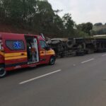 O Corpo de Bombeiros foi acionado e precisou retirar a vítima da cabine do caminhão. Segundo a informações colhidas com a PRF, o condutor, de iniciais R.L., estava consciente e queixava-se de dor na perna, mas ainda não há informações sobre o estado de saúde.