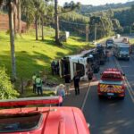 O condutor, de 39 anos, estava fora do veículo, consciente, orientado, foi atendido pelo Corpo de Bombeiros de Tangará – que prestaram os primeiros socorros – e conduzido pelo SAMU ao Hospital Divino Salvador, com suspeita de fratura no braço. O passageiro, um homem de 41 anos, estava com o corpo parcialmente projetado para fora do veículo, preso entre o caminhão e a pista, já sem vida no momento da chegada dos bombeiros.
