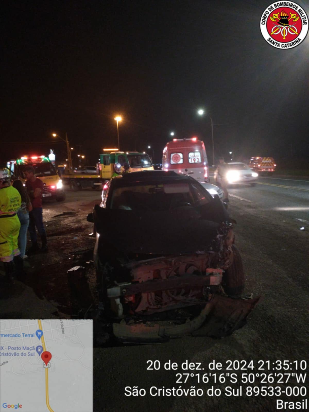 São Cristóvão do Sul – Acidente por volta das 21h10 desta sexta-feira (20) na BR-116 em São Cristóvão do Sul, próximo ao posto Maçã. Bombeiros de Curitibanos foram acionados e, no local, verificaram colisão entre Peugeot placas Mercosul e Ford Pampa placas de Lontras/SC.