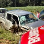 Condutor sofre ferimentos após caminhonete sair pista no interior de Campos Novos