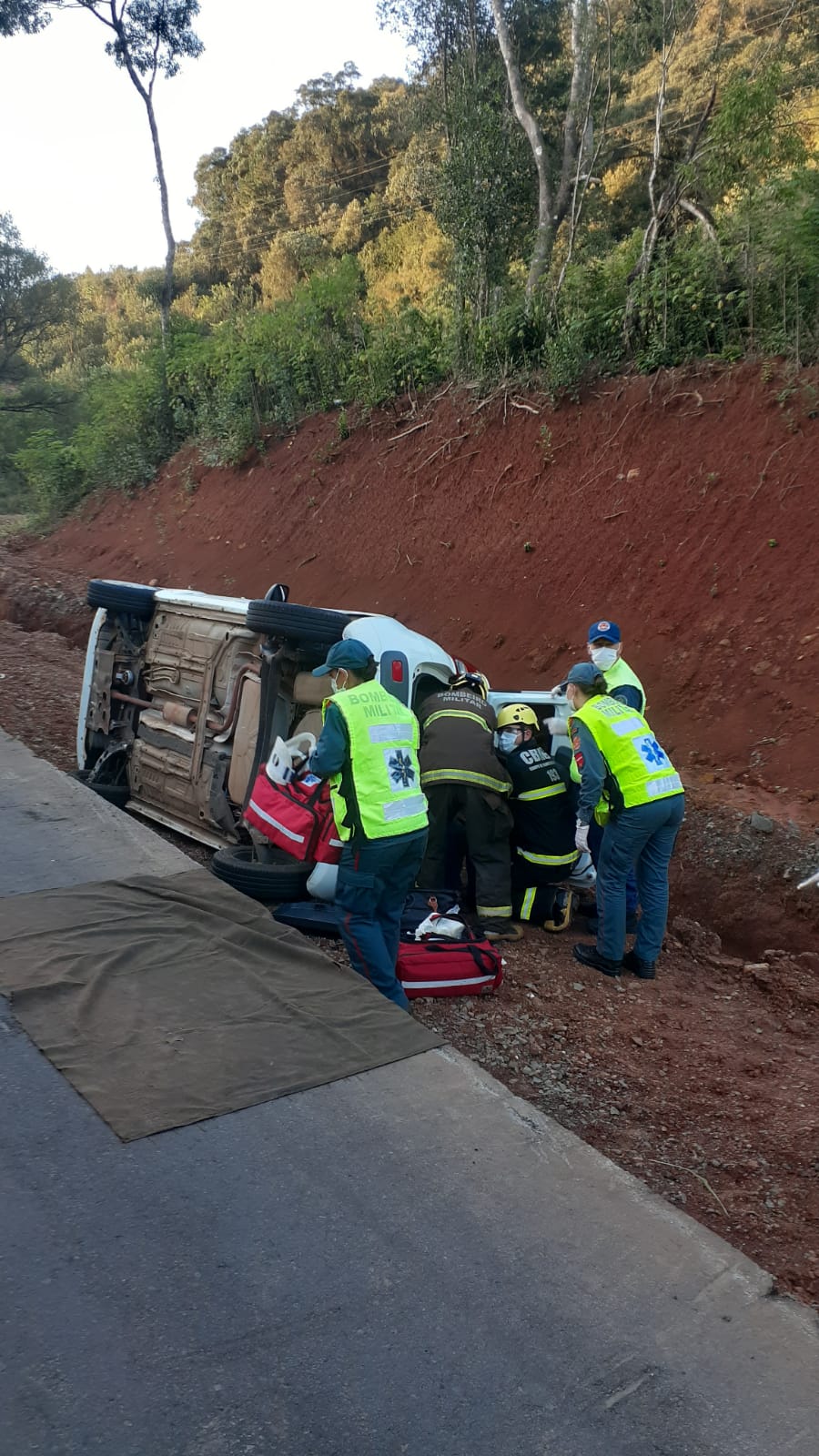 Rio das Antas – Por volta das 17h15 desta quarta-feira (27) o Corpo de Bombeiros foi acionado para um acidente de trânsito. Chegando ao local, foi constatada uma saída de pista seguida de tombamento de um Fiat Uno com placas de Videira-SC conduzido por mulher de 63 anos que trafegava sentido Videira – Caçador, quando a condutora sentiu-se mal e o veículo saiu da pista. A condutora foi encontrada sentada, consciente e orientada, sem lesões, no porta malas do carro. Foi avaliada pela guarnição dos bombeiros e encaminhada ao Hospital Salvatoriano Divino Salvador em Videira para avaliação médica. Após os procedimentos cabiveis, o veículo foi recolhido pelo guincho e a guarnição retornou ao quartel.