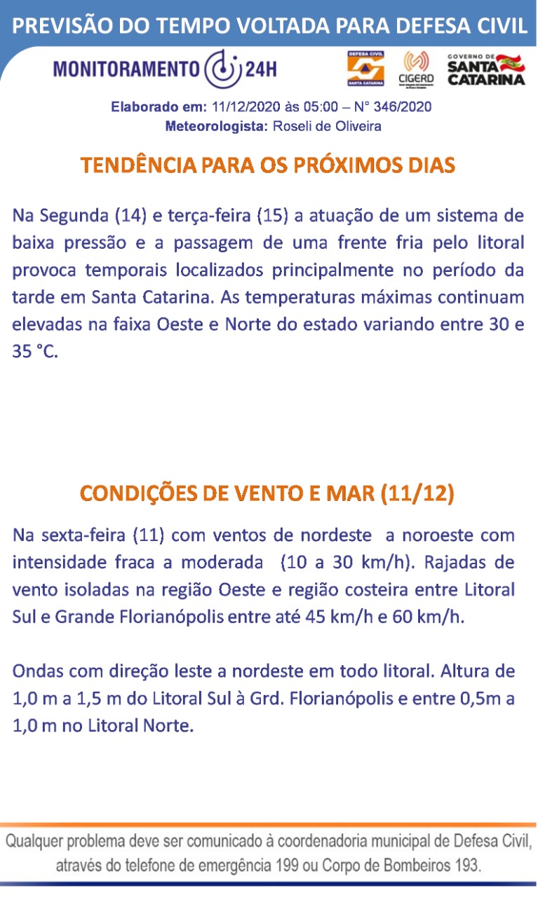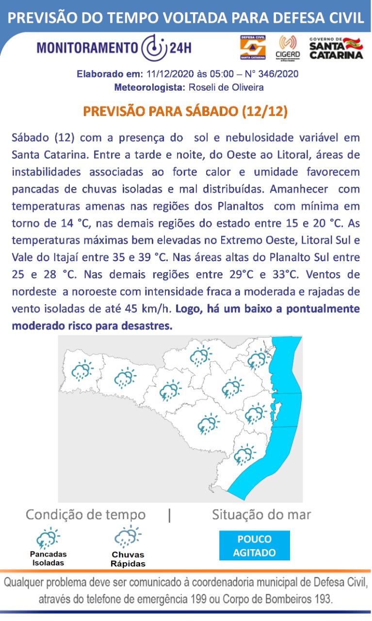 Confira a previsão do tempo para o fim de semana em Santa Catarina Região 11 de dezembro de 2020Redação
