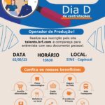 Seleção de pessoal, dia 02 Maio (terça-feira) às 13h30 no SINE.