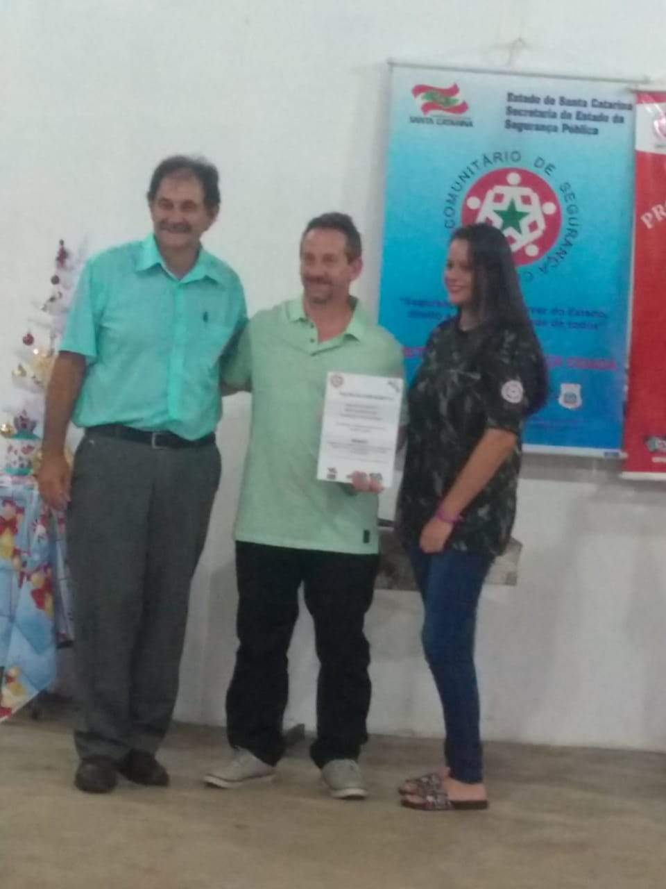 Capinzal – O Conselho Comunitário de Segurança (Conseg) realizou na noite desta terça-feira (11) a reunião ordinária de encerramento das atividades do ano. O encontro ocorreu no salão comunitário do Loteamento Colina. Na ocasião foram homenageados os ex-presidentes. Carlos Alberto dos Santos, primeiro presidente provisório em 2004. No ano de 2005 assumiu a presidência definitiva até 2007, Oraci Souza Duarte. O terceiro presidente foi Valdecir José Saretta de 2007 até 2009. O quarto presidente foi Antônio José Concatto de 2009 até 2011. O quinto presidente foi Abel Machado de Melo de 2011 até 2013. O sexto presidente foi Elizeu Xavier Correia de 2013 até 2015. O sétimo presidente foi Olavo Garcia de 2015 até 2017 e a oitava presidente Rose Vilarino Bonadiman de 2017 até março de 2019.
