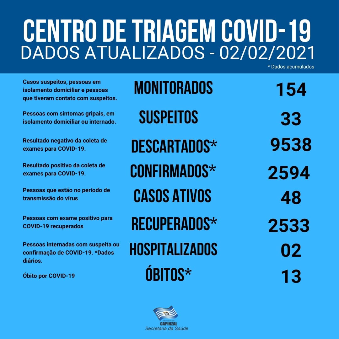 Covid-19: dados atualizados pela Secretaria de Saúde de Capinzal Últimas Notícias 2 de fevereiro de 2021Redação Foto: Mauricio Vieira / Secom