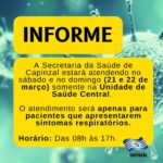 Capinzal – Diante do decreto de emergência em Santa Catarina a Secretaria de Saúde de Capinzal estará atendendo neste sábado (21) e domingo (22) das 8h às 17h, sem fechar ao meio-dia. Os profissionais estarão atuando no sistema de triagem, assim como foi feito durante a semana, especificamente, para casos síndromes gripais.