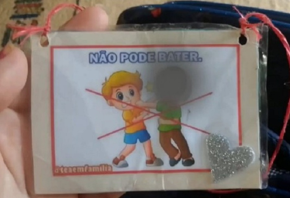 Crachá em pescoço de criança com autismo deixa mãe indignada em SC: “não pode bater”