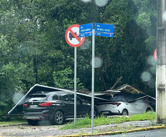Além dos fortes ventos, a chuva também foi intensa e acabou causando alagamentos nos bairros Colatto e Centro.