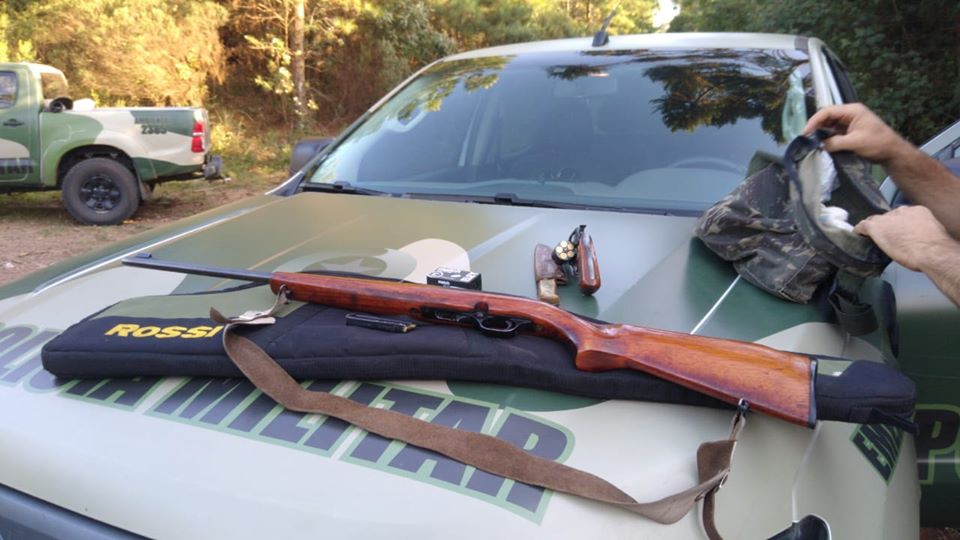Na tarde desta quarta-feira (12), na localidade de Limoeiro, interior do município de Água Doce e limite com o município de Vargem Bonita, o 2º Batalhão de Polícia Militar Ambiental (PMA), por meio da unidade de Joaçaba, flagrou dois homens portando ilegalmente duas armas de fogo no interior de um veículo, sendo um rifle calibre 22, carregado com 8 munições e outras 145 munições deste mesmo calibre guardadas em uma mochila, bem como um revólver calibre 38, municiado com 5 munições e outras 15 guardadas em um pacote, e ainda outras três munições de calibre 32.