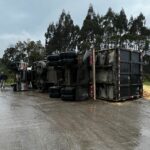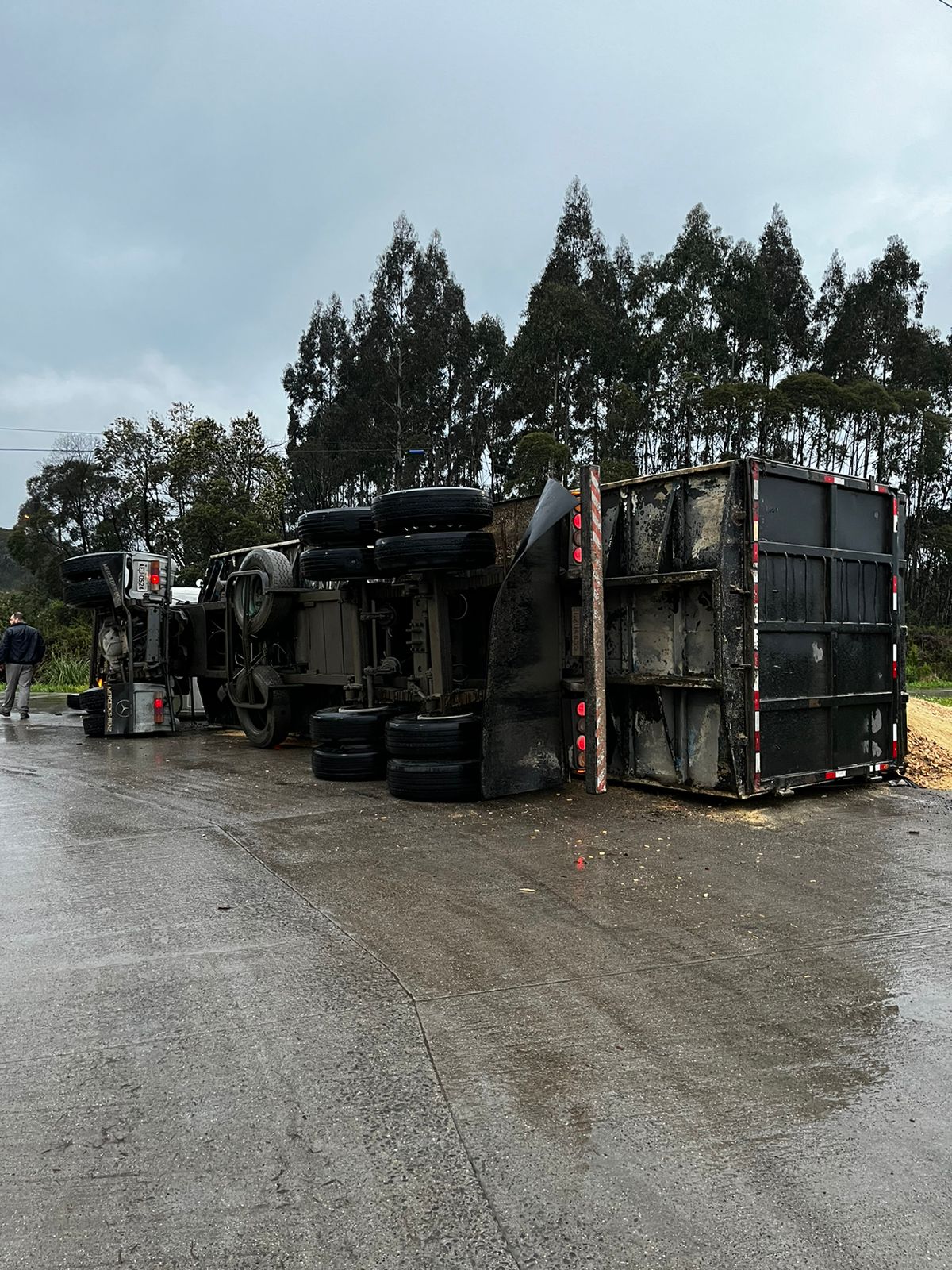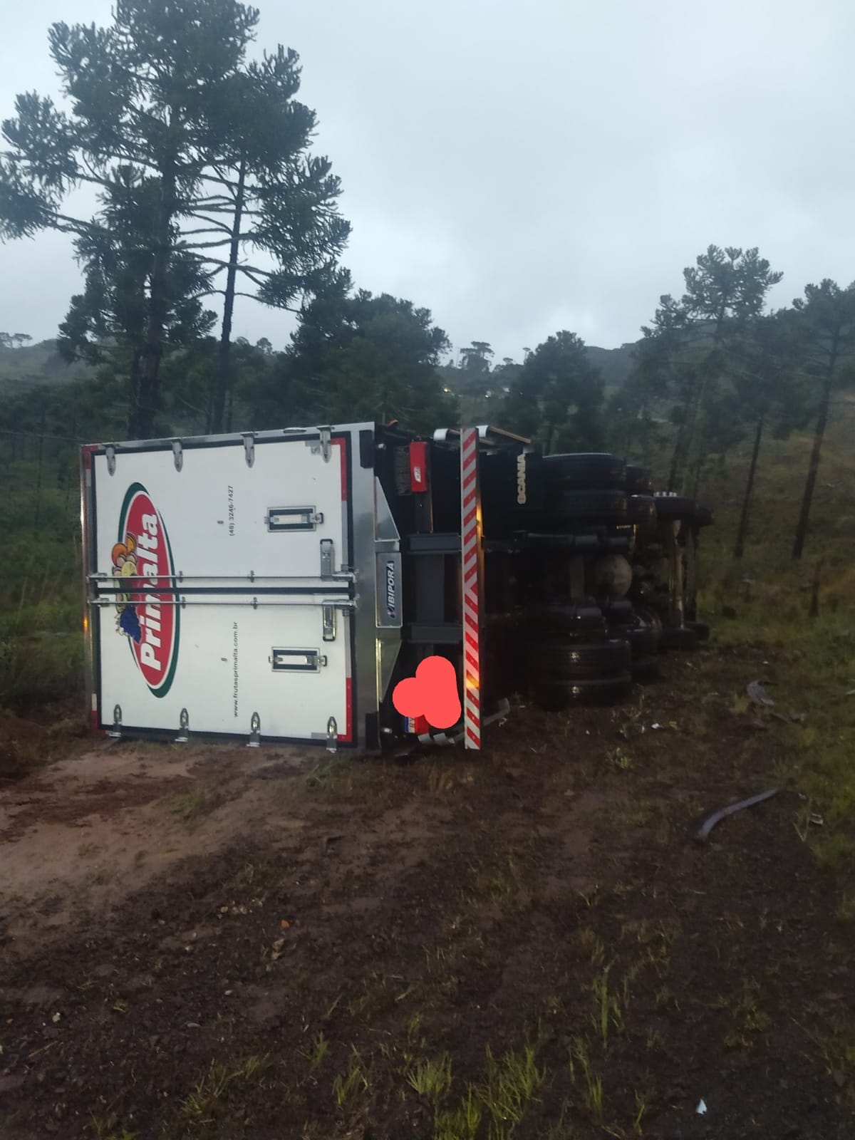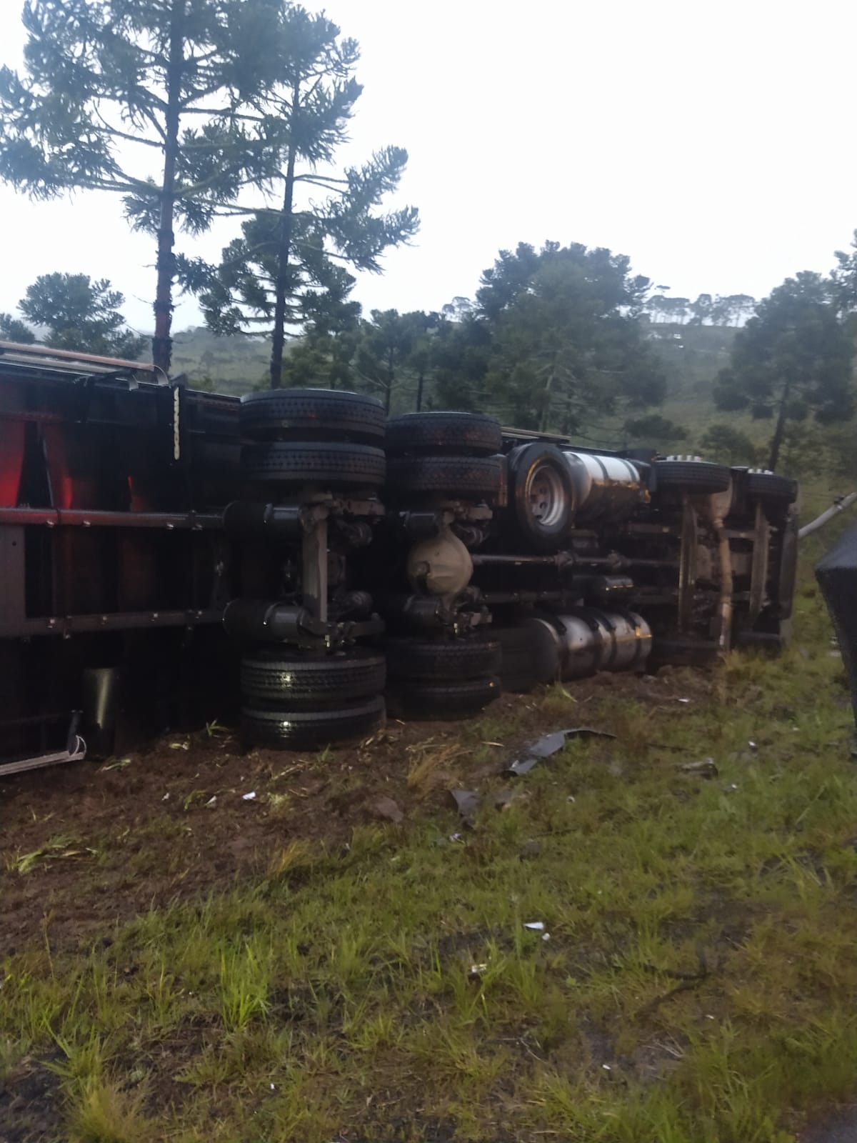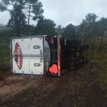 Por volta das 18h na SC-114, localidade de Cruzeiro, interior de São Joaquim, os bombeiros atenderam a um acidente de trânsito de veículo pesado. No local foi confirmado que tratava-se de uma saída de pista seguida de tombamento lateral de um caminhão Scânia, placas padrão Mercosul. De imediato foi constatado que o caminhão estava vazio na cabine, sem vitimas presas nas ferragens, sendo que o condutor chegou posteriormente de carona com um morador local, informando a guarnição que saiu do veículo por meios próprios, sem lesão aparentemente grave, foi feito o atendimento pela guarnição dos bombeiros, constatado os sinais vitais alterados, foi conduzida a vítima para reavaliação no Hospital Sagrado Coração de Jesus. Sem perigo iminente de um novo acidente, liberando o trânsito nos dois sentidos.
