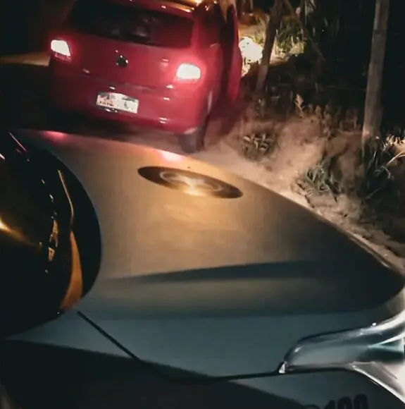 Conforme a PM, a guarnição recebeu informações que estaria ocorrendo o furto em uma casa. os proprietários estavam acompanhando o crime em tempo real pelo sistema de segurança do imóvel. Quando a guarnição chegou na rua da casa se deparou com um carro Volkswagen Gol de cor vermelha. O condutor apagou o farol assim que viu a guarnição e fugiu.
