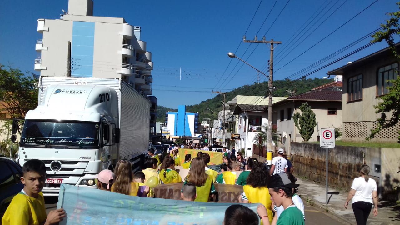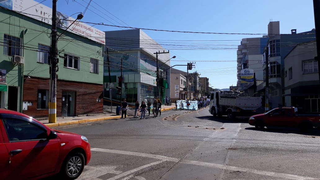 Ouro – A Escola de Educação Básica Prefeito Silvio Santos, de Ouro, promoveu na manhã desta quarta-feira (09) a sexta edição da Caminhada pela Vida. Com o tema “Compartilhe a Paz”, a caminhada saiu defronte à delegacia de Polícia Civil e seguiu até a Praça Pio XII, onde foram realizadas algumas apresentações voltadas à cultura da paz.