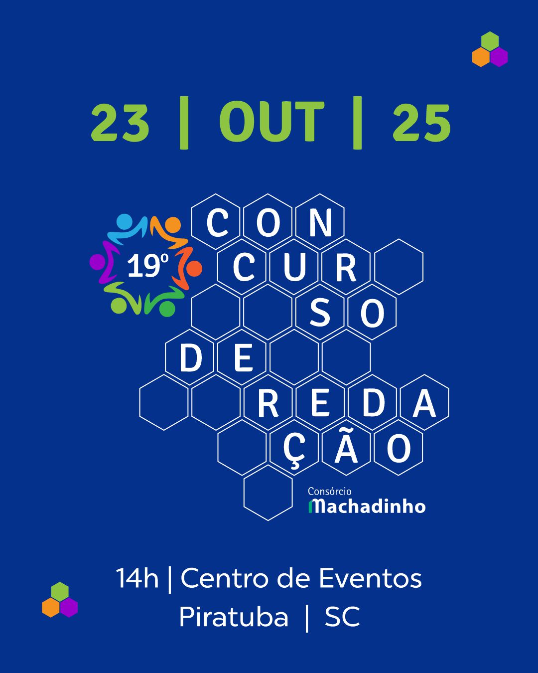 O Consórcio Machadinho entregará no dia 23 de outubro os prêmios da 19ª edição do Concurso de Redação. O tradicional evento de premiação, no Centro de Eventos de Piratuba, inicia às 14h, com solenidade de abertura, apresentações artísticas e entrega dos prêmios.