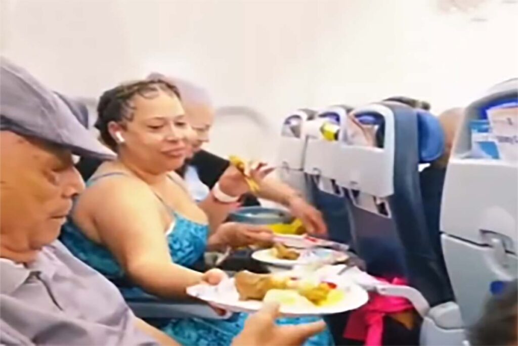 Uma família impressionou os usuários das redes sociais ao postar um vídeo de como conseguiram levar uma galinha caipira para comer durante um voo comercial. O vídeo, postado originalmente pela usuária do TikTok Analisia Reyes, mostra uma mulher sentada servindo frango de uma caçarola em pratos descartáveis. As informações são do Aeroin.