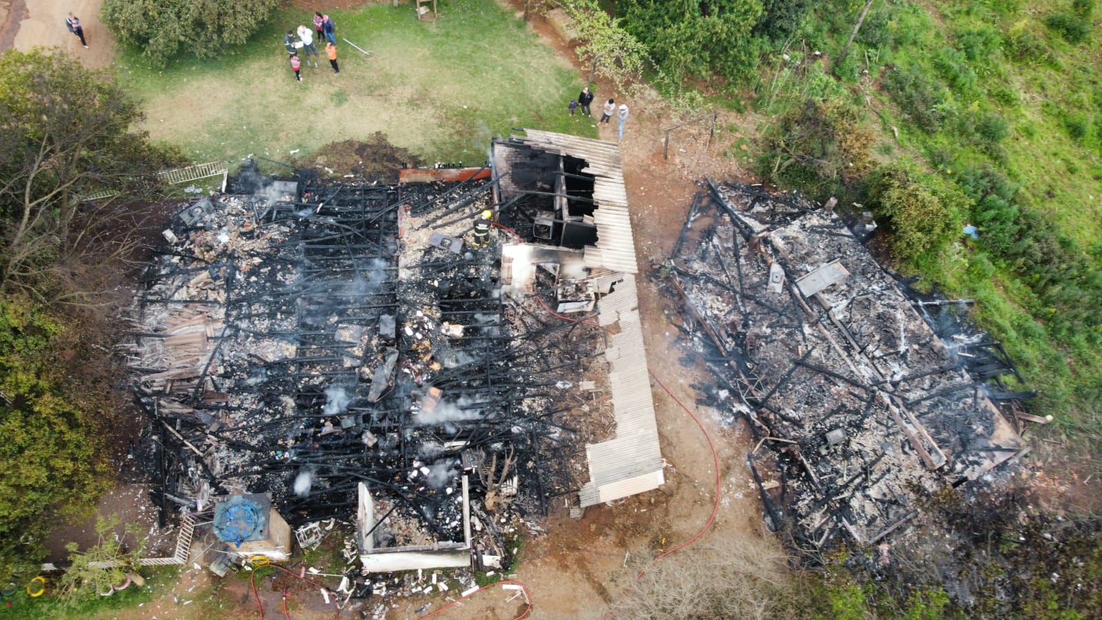 Uma residência e um galpão foram destruídos por incêndio na tarde deste domingo (04) na Linha Pitangueira, interior de Tunápolis, no Oeste catarinense. O Corpo de Bombeiros foi acionado por volta das 15h30, encontrando a propriedade totalmente tomada pelas chamas.