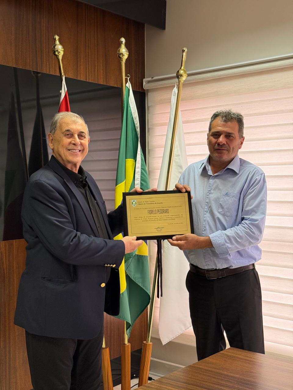 Fundador de uma das maiores empresas de Joaçaba e também uma das principais forças do setor atacadista do Brasil, o empresário Fiorelo Pegoraro recebeu, na tarde desta sexta-feira (12), o título de Cidadão Honorário de Joaçaba em um ato realizado na Câmara de Vereadores. O Grupo Pegoraro, cuja história remonta a década de 70, tem sua matriz estabelecida em Joaçaba, cidade que o empresário nascido em Irani (SC), escolheu residir e empreender.
