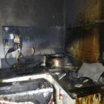 Após extinguir o incêndio e fez o rescaldo. Foi feito o uso do ventilador para retirada dos gases do interior do ambiente. Foram usados aproximadamente mil litros de água. O incêndio pode ter sido ocasionado por mal funcionamento de uma fritadeira.