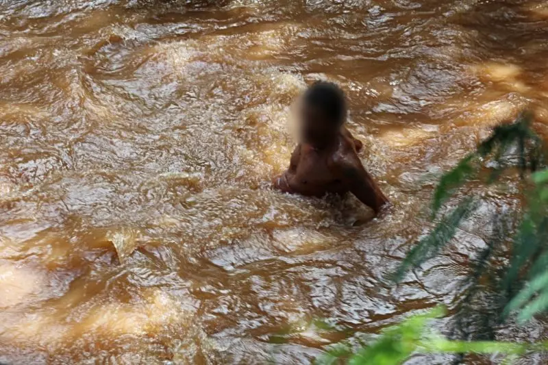 Na fuga, o suspeito invadiu várias casas até entrar em um matagal onde se jogou em um riacho para fugir do cerco policial. O homem foi arrastado pela força da água e acabou perdendo a roupa que vestia, mas nem isso o parou e ele seguiu fugindo peladão.