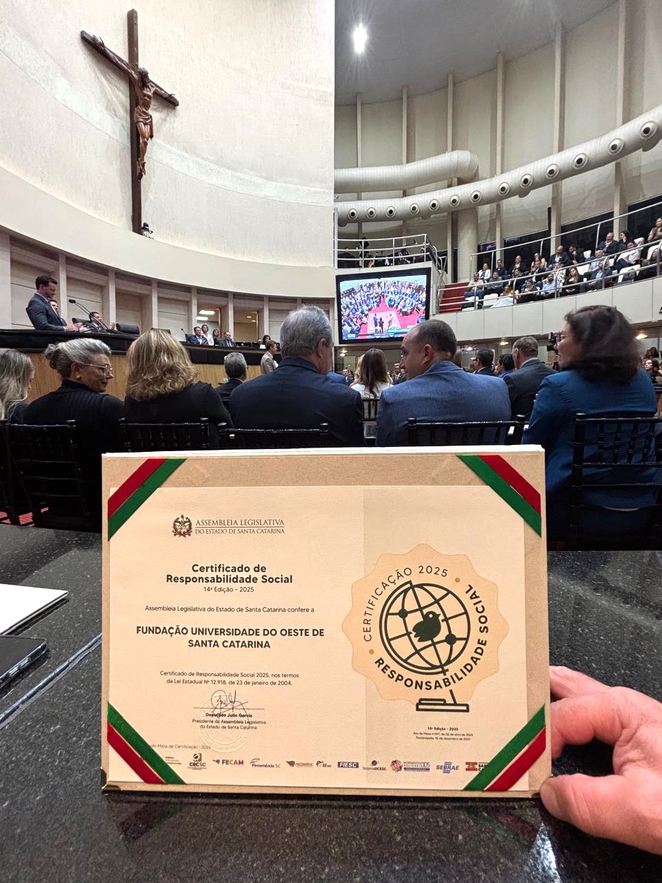 — Receber o Certificado de Responsabilidade Social é motivo de orgulho para toda a nossa Fundação. Trabalhamos diariamente para que a educação e a saúde transformem realidades, e ver esse esforço reconhecido pela Alesc nos motiva a seguir avançando — enfatiza o presidente.
