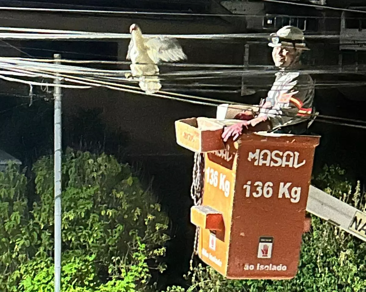 Ao ver a cena, Pedro ligou para os Bombeiros e depois para a Celesc e recebeu a orientação de não mexer no animal e aguardar a ida de uma equipe até o local.
