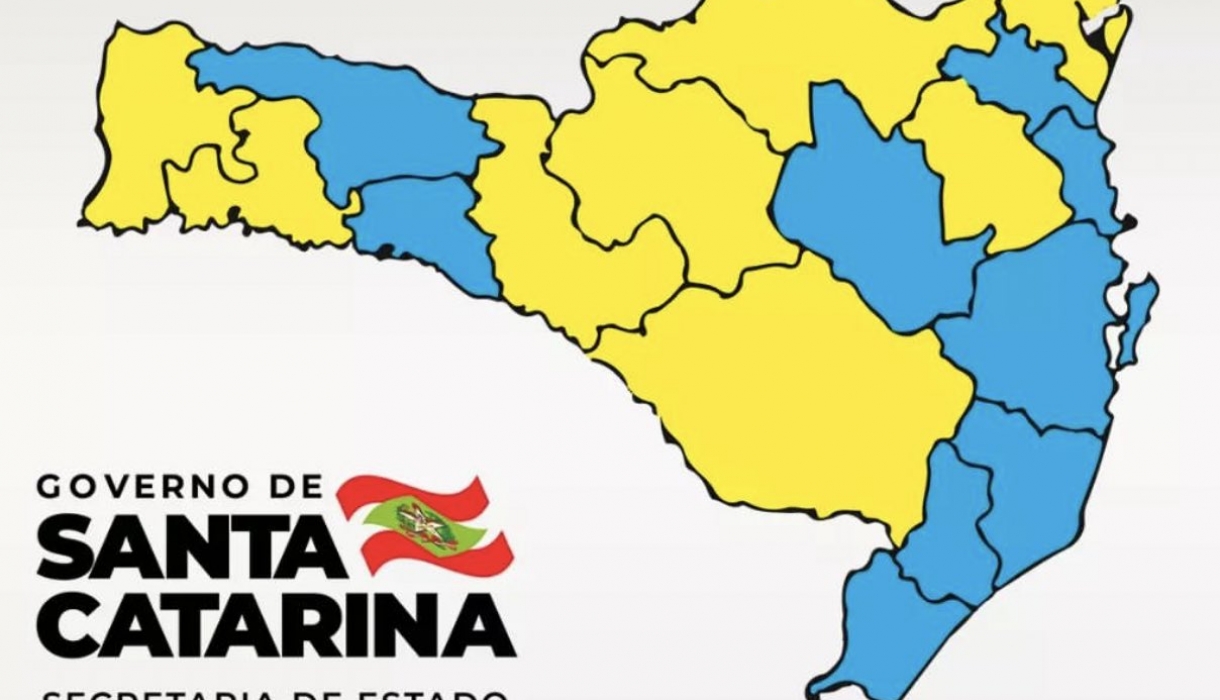 A matriz de risco potencial regionalizado divulgada no dia 12 de março aponta 09 regiões classificadas no nível Moderado (cor azul): Alto Uruguai Catarinense, Alto Vale do Itajaí, Carbonífera, Extremo Sul Catarinense, Foz do Rio Itajaí, Grande Florianópolis, Laguna, Vale do Itapocu e Xanxerê, e 8 regiões no nível Alto (cor amarela): Alto Vale do Rio do Peixe, Extremo Oeste, Médio Vale do Itajaí, Meio Oeste, Nordeste, Oeste, Planalto Norte e Serra Catarinense.