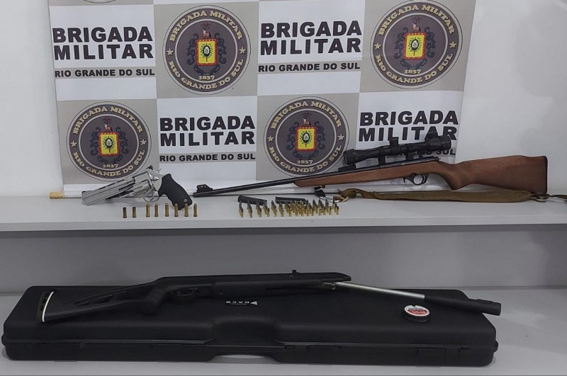 Foram apreendidos um revólver calibre 38, oito munições do mesmo calibre sendo duas deflagradas e seis intactas, um rifle calibre 22, 75 munições intactas de calibre 22 e uma espingarda de pressão. Diante do fato a vítima foi encaminhada para o registro e o homem de 49 anos de idade foi socorrido e preso ambos encaminhado para os procedimentos cabíveis.