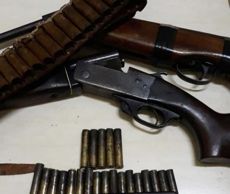 A guarnição efetuou buscas pelo suspeito, que foi localizado dentro de um veículo Tempra. Ele estava em posse de uma espingarda calibre 36, além de três cartuchos deflagrados, 14 cartuchos calibre 22 e outra espingarda de pressão.