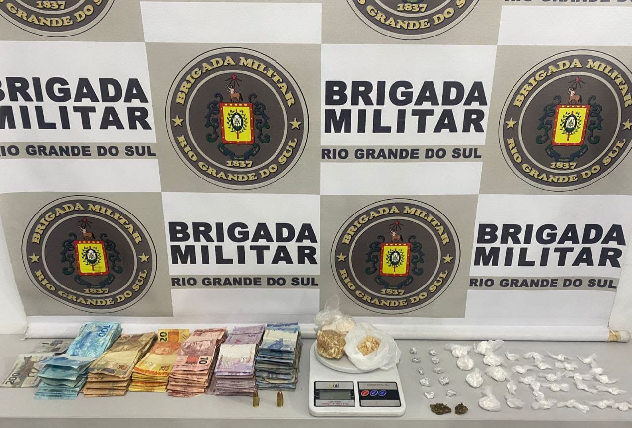 Durante patrulhamento no bairro Industrial, uma guarnição da Brigada Militar visualizou um indivíduo em frente a um local conhecido por venda de drogas. Ao realizar a abordagem foi constatado através do sistema informatizado de dados um mandado de prisão pelo crime de furto/roubo em desfavor do mesmo.