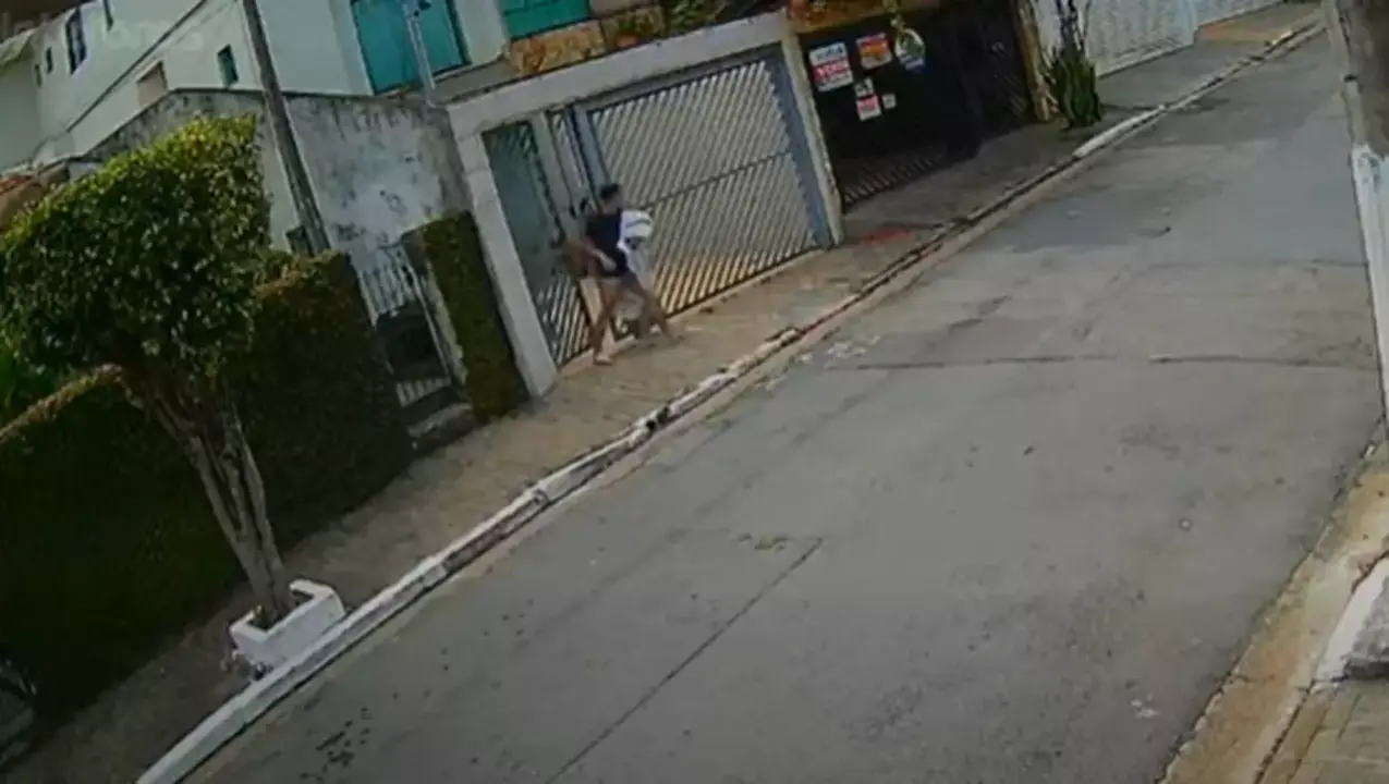 Imagens de câmeras de segurança mostram o suspeito tentando invadir uma casa na rua. Como a porta estava trancada, ele seguiu até a residência da idosa, abriu o portão e entrou. Dentro do imóvel, permaneceu por mais de meia hora. Mesmo doente, a vítima reagiu, entrou em luta corporal com o agressor, conseguiu empurrá-lo para fora do quarto, trancou a porta e gritou por socorro.