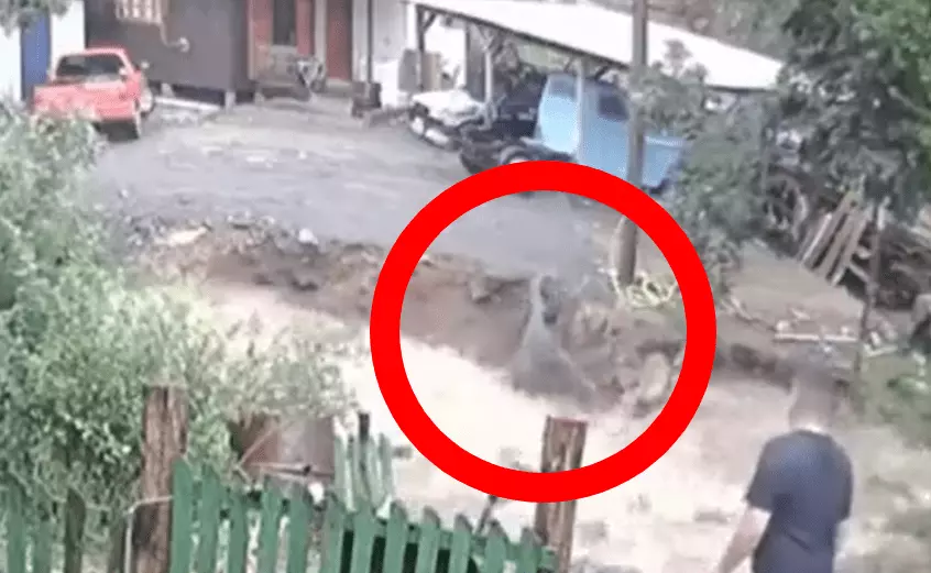 “Ô pai, ô pai”, gritam as pessoas que assistem à cena desesperados. O homem consegue se segurar na margem do rio e se apoia em uma árvore para conseguir sair de dentro da água, escalando até um local seguro.